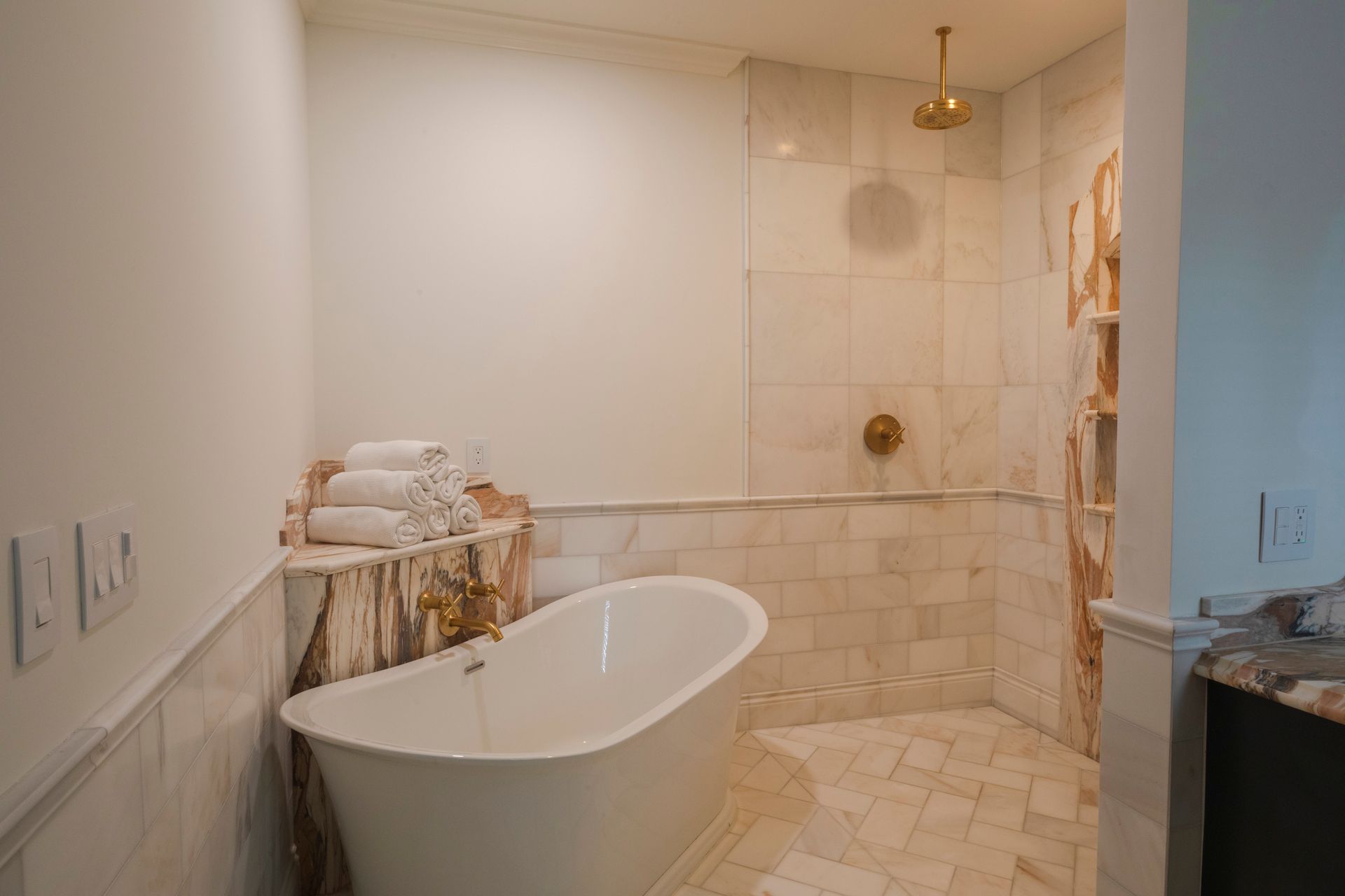 This renovation redefined the primary floor to improve circulation, functionality, and comfort for contemporary living. Two small bedrooms and bathrooms were transformed into a spacious, luxurious primary suite complete with a generous bedroom, spa-inspired ensuite, and expansive walk-in closet. The redesigned kitchen now integrates the stair and hallway, inviting more natural light into the home. Additional highlights include custom wainscoting in the dining room and significant structural and systems upgrades to enhance the home’s overall performance.